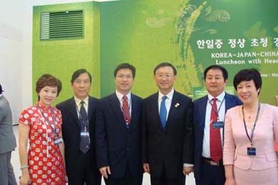 根據(jù)會(huì)議日程安排,5月30日中午,中國國務(wù)院總理溫家寶、韓國總統(tǒng)李明博、日本首相鳩山由紀(jì)夫與出席中日韓工商峰會(huì)的企業(yè)家代表共進(jìn)午餐。