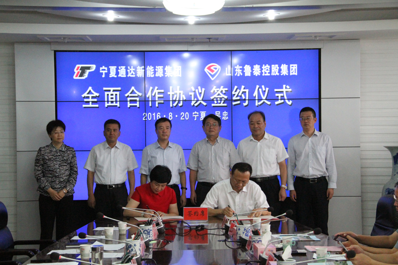 2016年8月20日上午,寧夏通達(dá)新能源集團(tuán)有限公司和山東魯泰控股集團(tuán)有限公司全面合作簽約儀式在吳忠市市政府會(huì)議室隆重舉行。我公司董事長(zhǎng)李萍與山東魯泰控股集團(tuán)有限公司總經(jīng)理李合軍簽訂全面合作協(xié)議并分別致辭。參加此次全面合作簽約儀式的嘉賓有吳忠市市委書記、市人大常委會(huì)主任趙永清、吳忠市市委副書記、市長(zhǎng)喜清江、中國(guó)信達(dá)資產(chǎn)管理股份有限公司副總裁李月瑾、濟(jì)寧市國(guó)資委黨委書記、主任何錫明等人。簽約儀式由吳忠市副市長(zhǎng)楊金海主持。