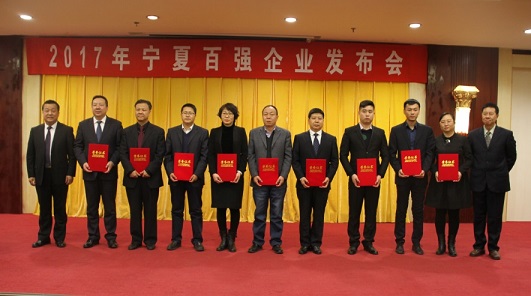 11月30日下午,2017年寧夏百強企業(yè)新聞發(fā)布會在寧夏悅海賓館會議中心舉行。會上,由寧夏百強企業(yè)審定發(fā)布委員會、寧夏回族自治區(qū)企業(yè)協(xié)會、寧夏工業(yè)園區(qū)聯(lián)合會主辦的“寧夏百強企業(yè)”評選結果揭曉,公司榮膺“寧夏百強企業(yè)”稱號,位列17位。