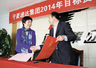 董事長(zhǎng)分別與寧夏萬(wàn)和利煤炭有限公司、小泉煤礦、羅花崖煤礦等4 家單位及2 名個(gè)人簽訂了2014年生產(chǎn)經(jīng)營(yíng)和項(xiàng)目建設(shè)目標(biāo)責(zé)任書(shū)。簽訂目標(biāo)責(zé)任書(shū)的領(lǐng)導(dǎo)分別代表單位和個(gè)人對(duì)2014 年度的工作做了表態(tài)發(fā)言。
